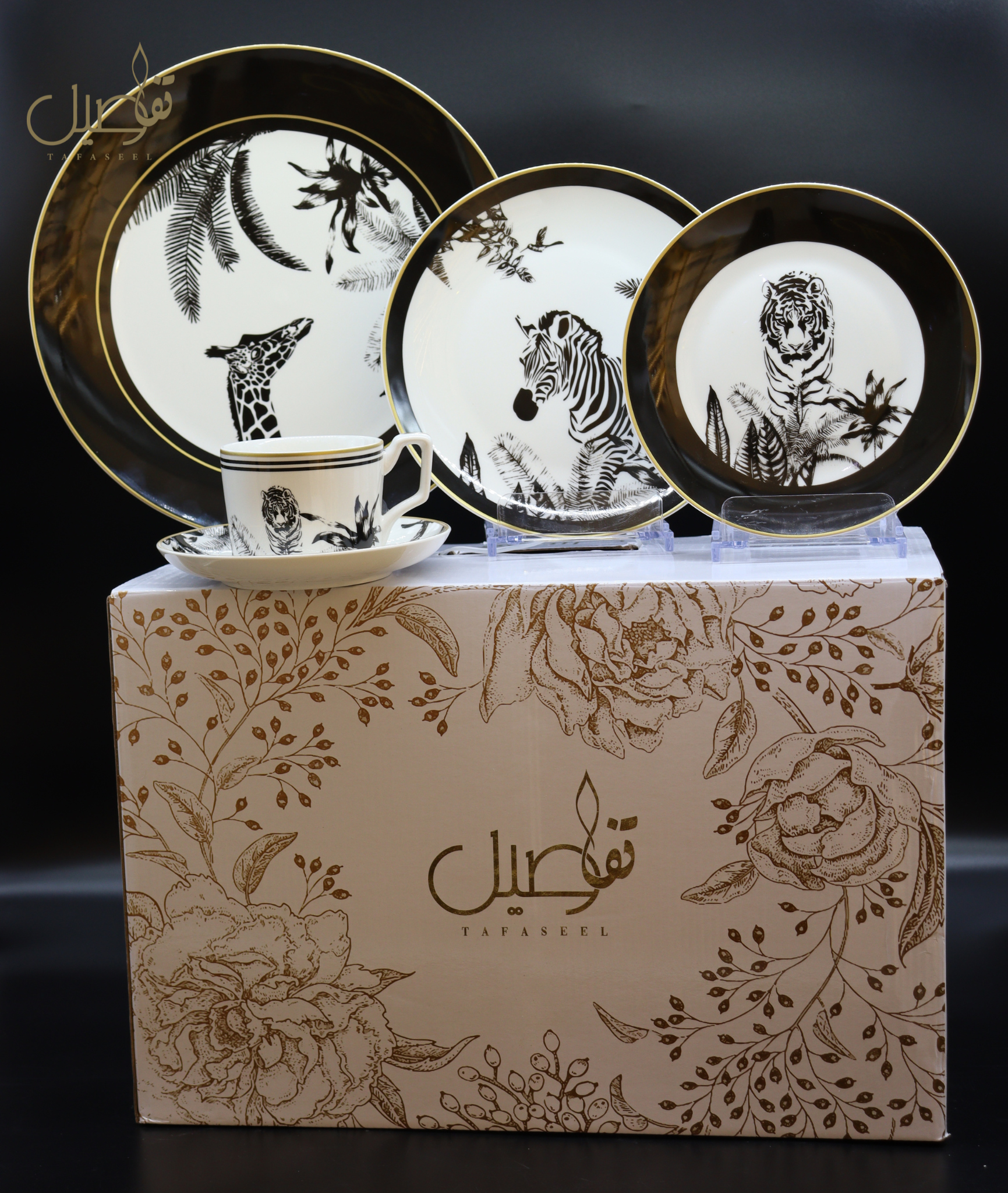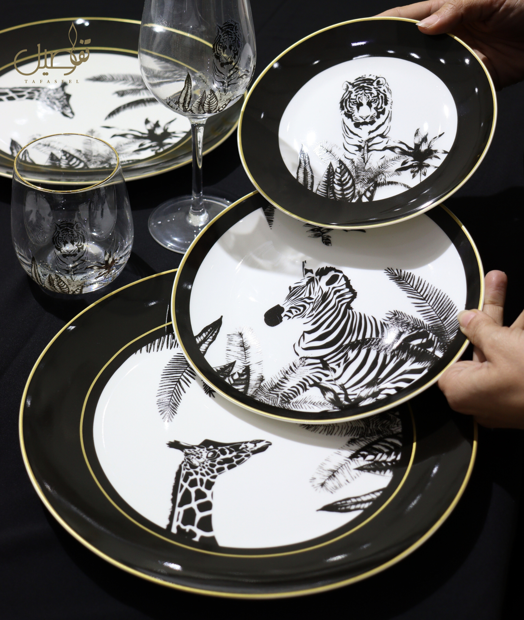 💎 نقدم لك سلسلة أطباق الحيوانات الأفريقية زيبرا الفريدة والمكونة من 30 قطعة يكفي ل 6 أشخاص ، التي تجمع بين الأناقة وعبق الطبيعة البرية.