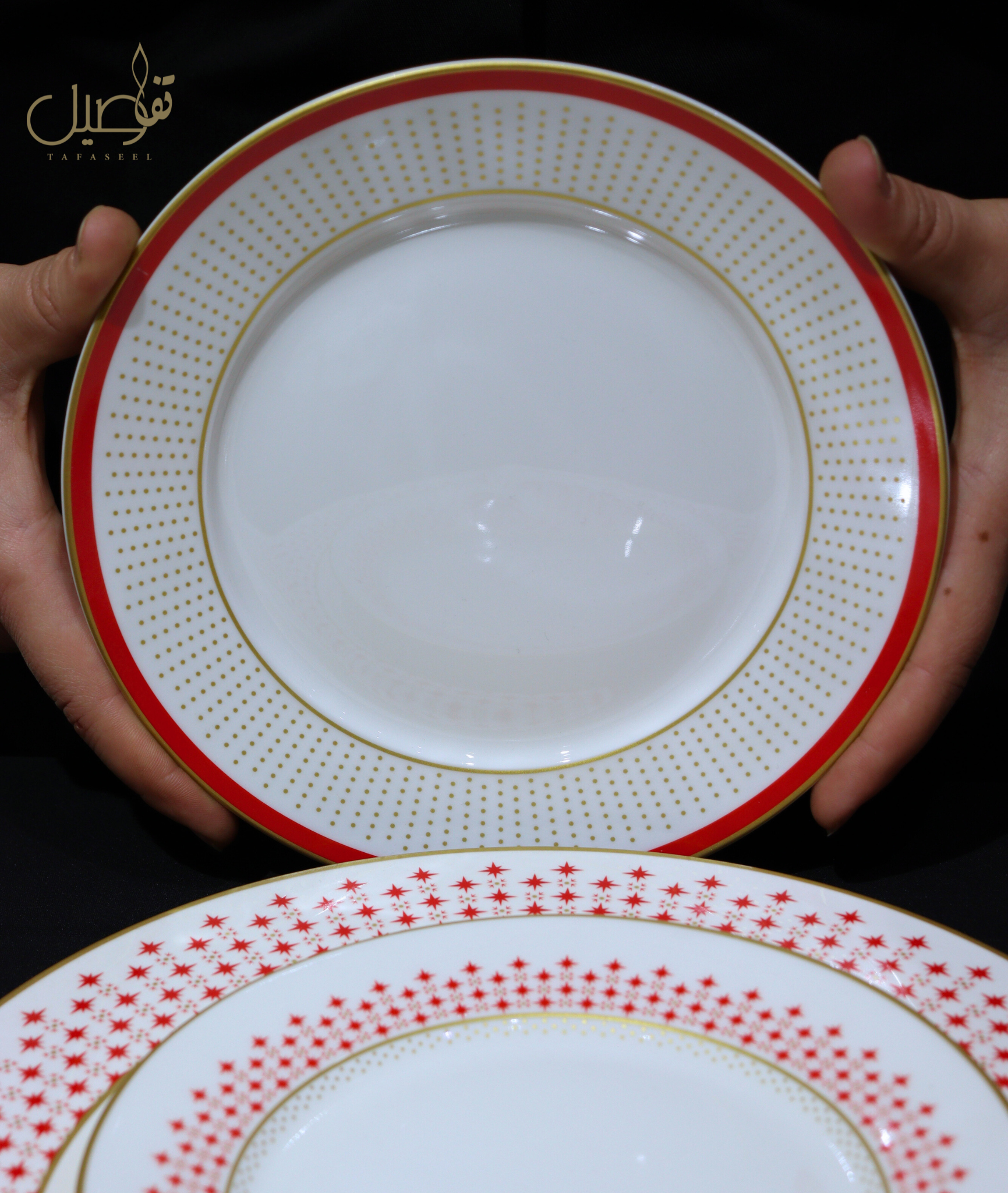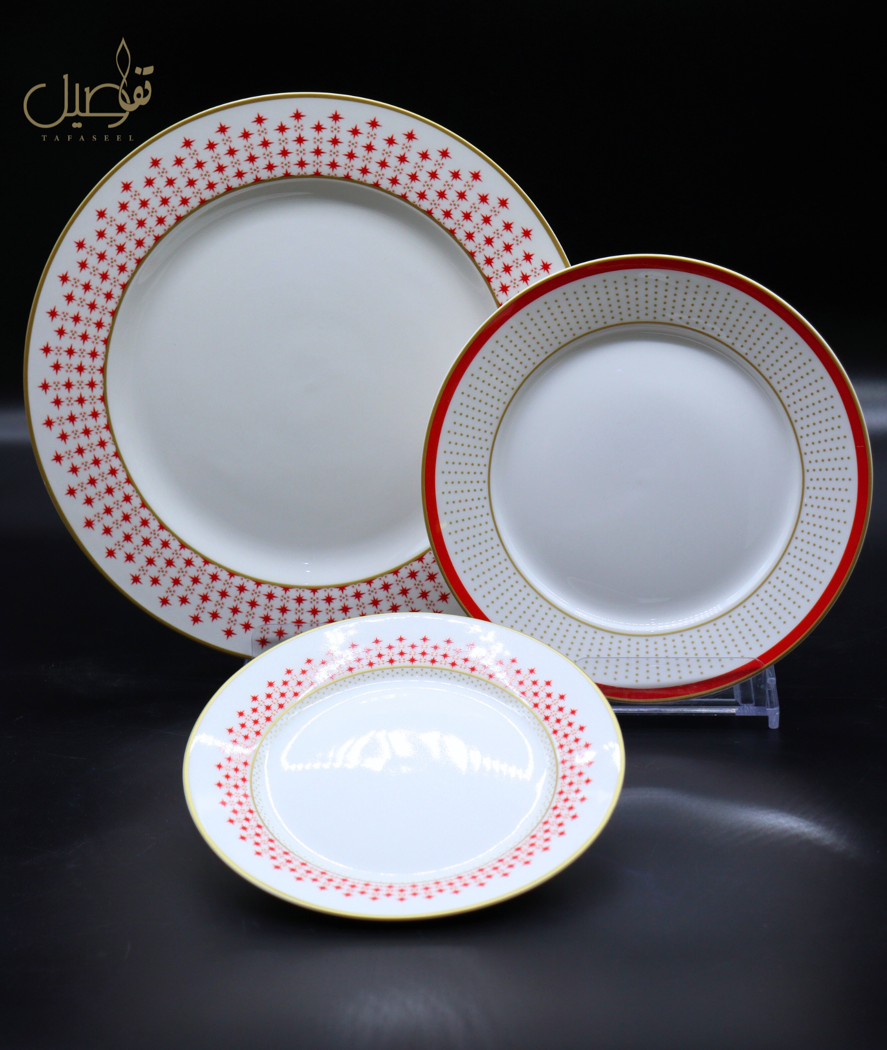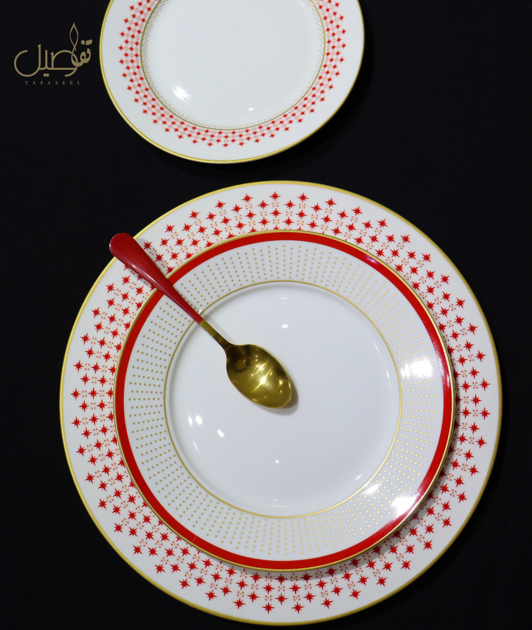 نقدّم لكِ طقمًا مميزًا باللون الأحمر الجذاب، مكوّن من 18 قطعة تكفي لـ 6 أشخاص، مثالي للمناسبات الخاصة أو لإضافة لمسة راقية إلى يومكِ العادي.