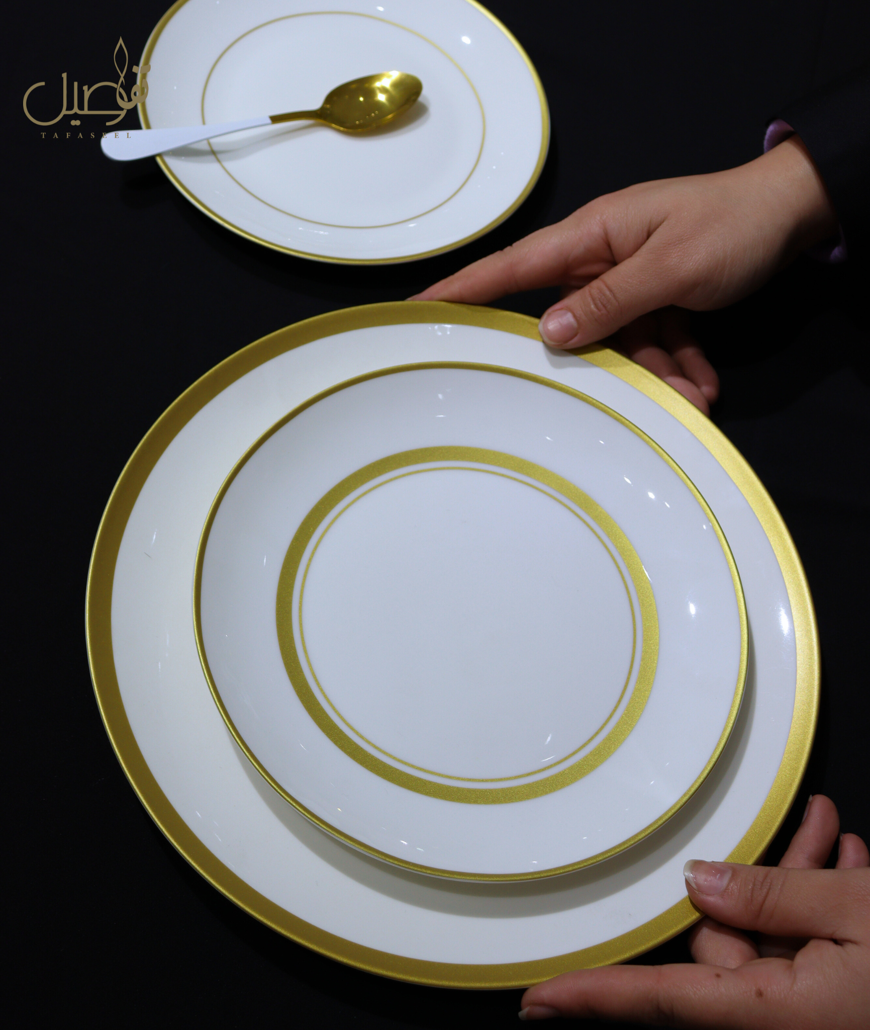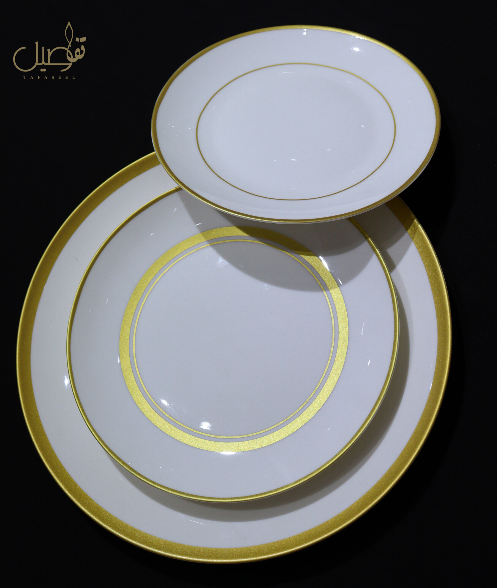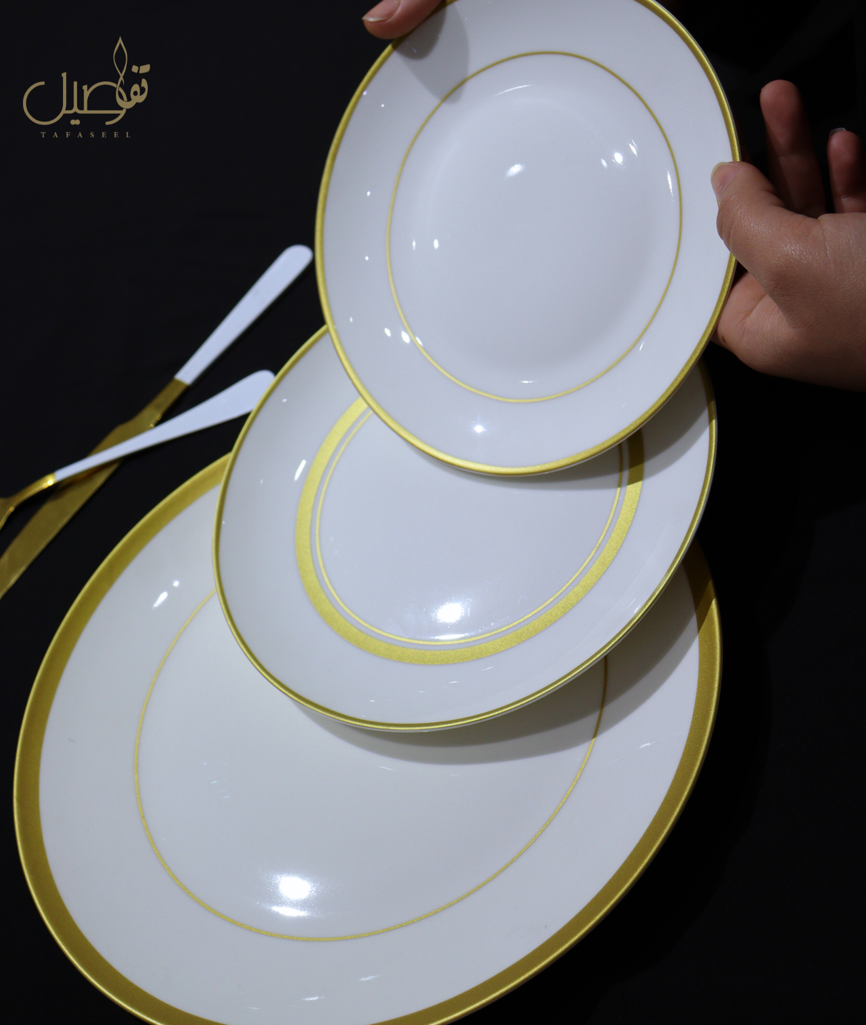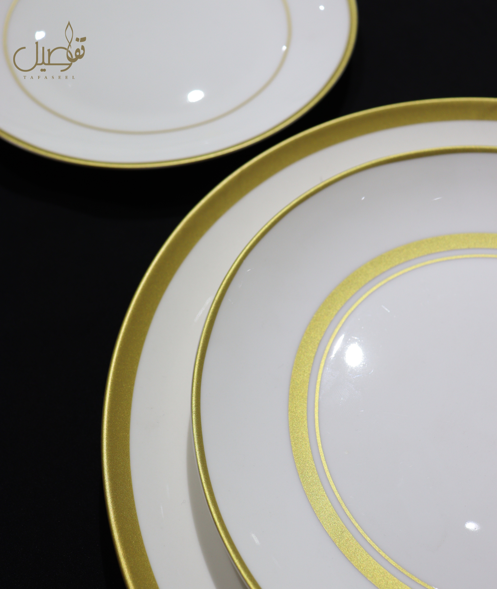 🌟 أضيفي لمسة من الفخامة إلى طاولتك مع هذا الطقم المميز باللون الأبيض الذهبي الراقي!