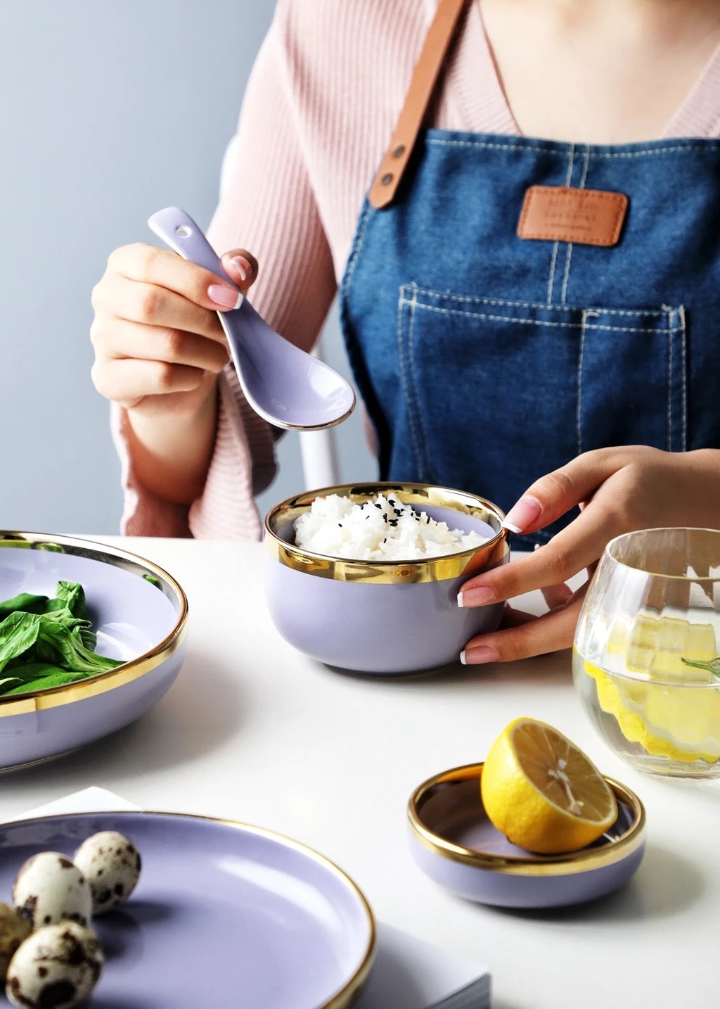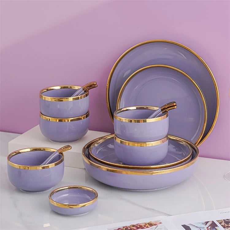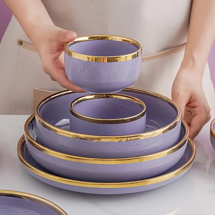 Cet ensemble comprend tout ce dont vous avez besoin pour une table élégante et raffinée. Les assiettes sont fabriquées avec soin pour une durabilité exceptionnelle et une esthétique irréprochable. Les couverts en or brillant ajoutent une touche finale de glamour à chaque repas.